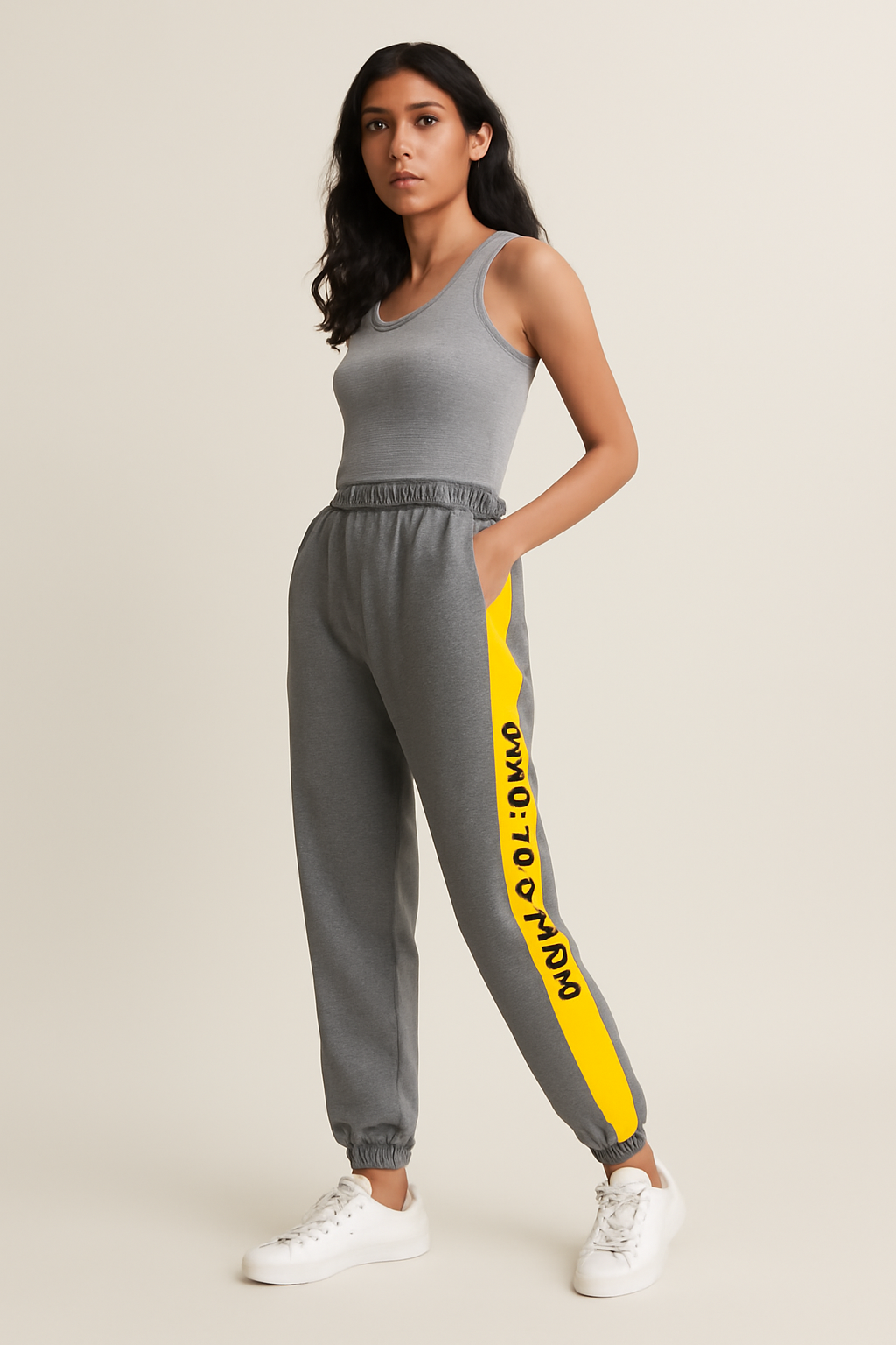 Step up your streetwear game with these bold and comfy Grey & Yellow Contrast Stripe Joggers. Crafted for the modern Gen Z wardrobe, these joggers feature a sleek grey base with a vibrant yellow side panel and edgy black text detailing — perfect for making a sporty style statement. The elasticated waistband and ankle cuffs provide a secure yet relaxed fit, making them ideal for everything from gym sessions to laid-back weekend vibes.